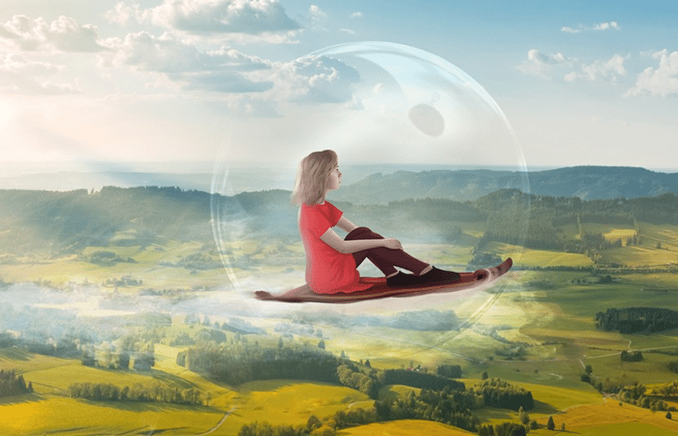 Anna on her flying carpet on the way to the Quentin Academy of Magical Arts and Sciences